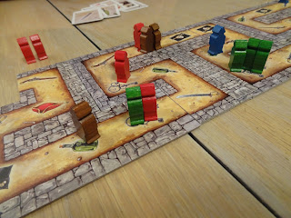 Love Letter is a simple card game for 2-4 players that takes about five minutes per round. I prefer it with at least three players. It is a great game to play with children as young as seven years, or with adults when waiting for something or between heavier games. You can even play it standing by simply holding the discards in one player's off hand and the draw pile in another's off hand.There are many versions of the game. We prefer the American standard "Princess" version because the nonviolent theme of courtly love and intrigue and fact that over half of the characters depicted are female makes it a refreshing change from the violent/male themes of many games. However, we introduce house rules based on other versions to improve the balance. We also use the version that comes in the velvet bag instead of a box.