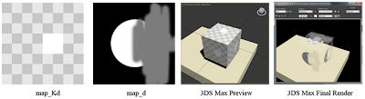 Finally, I've heard that some packages recognize map_d textures with an alpha channel and use that instead of the intensity, so that you can use "map_d file / map_Kd file" to get alpha cutouts. 3DS Max does not: