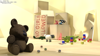 | Still from a ray traced short film produced by CS371 students |