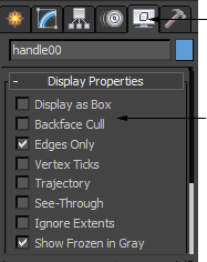 | Backface culling is toggled through the Display Properties rollout on the display tool panel. |